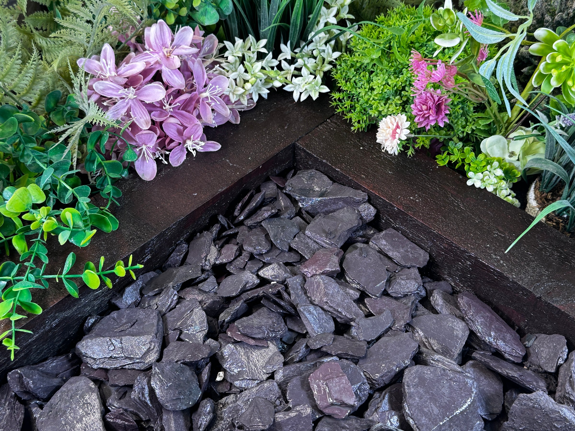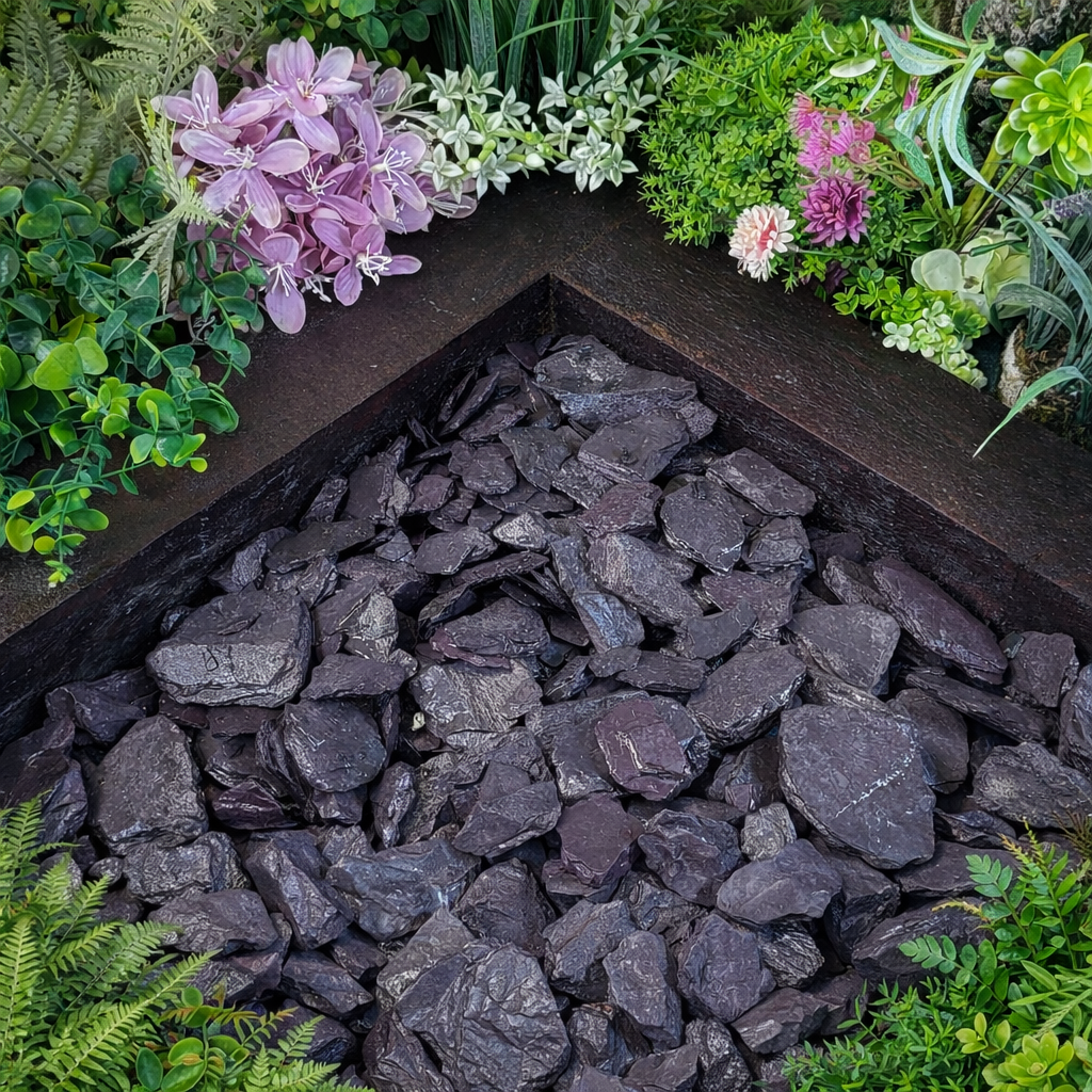 They are perfect for garden pathways and driveways as the shape of the plum slate 20mm allows the slate to bed down in use, ensuring a more comfortable walking surface.